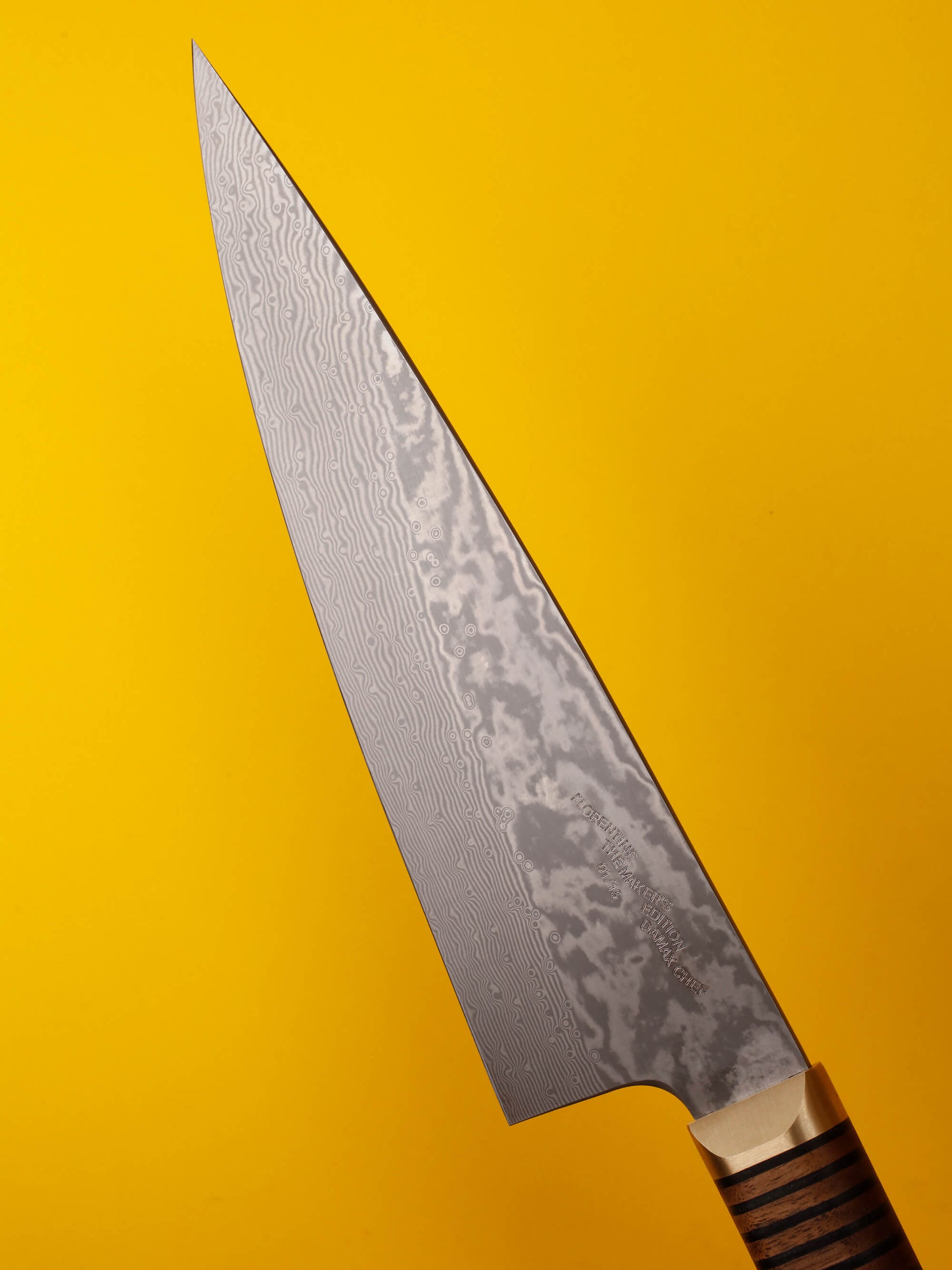 For our February Maker’s Edition, we present a refined expression of our Florentine Chef’s knife in very fine-layered Damascus steel. The steel was lightly hammered to introduce movement into the layers, then ground, heat treated, and finished to a high standard. After extensive work with this material, this edition marks a high point in our work with Damax.