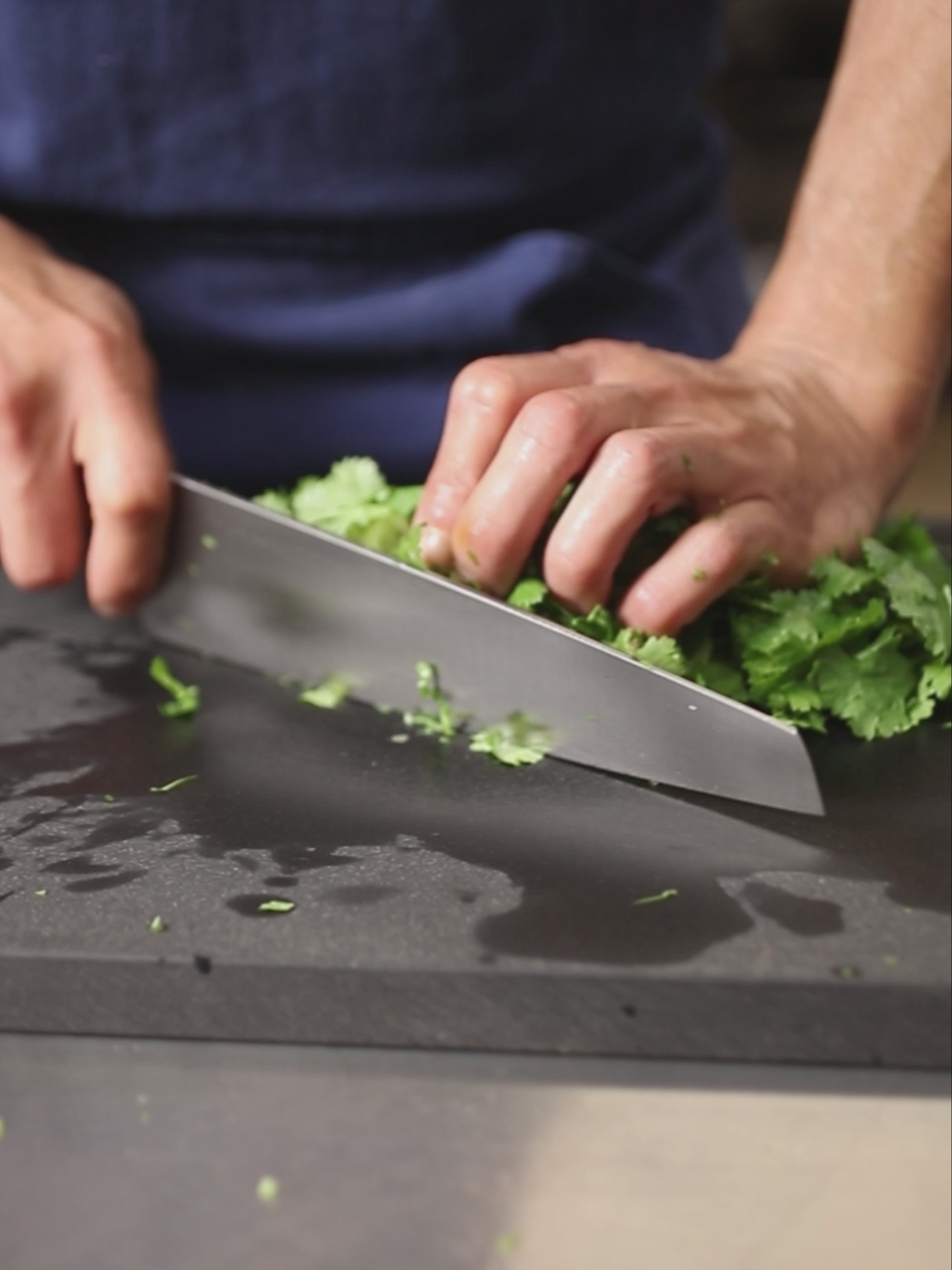 The XL Chopper combines the chopping power of a Nakiri, with the reach and versatility of a Gyuto or large Chef knife, creating a true hybrid. Its long, flat edge excels at vegetable prep, offering the rapid chopping precision, while a subtle curve toward the tip allows for rocking cuts and slicing proteins with Gyuto-like ease. Taller than a Gyuto and more agile than a cleaver, it balances authority and control, and is good for everything from fine herb work to tackling big prep sessions. For those who want one knife—a workhorse that can handle almost anything.
